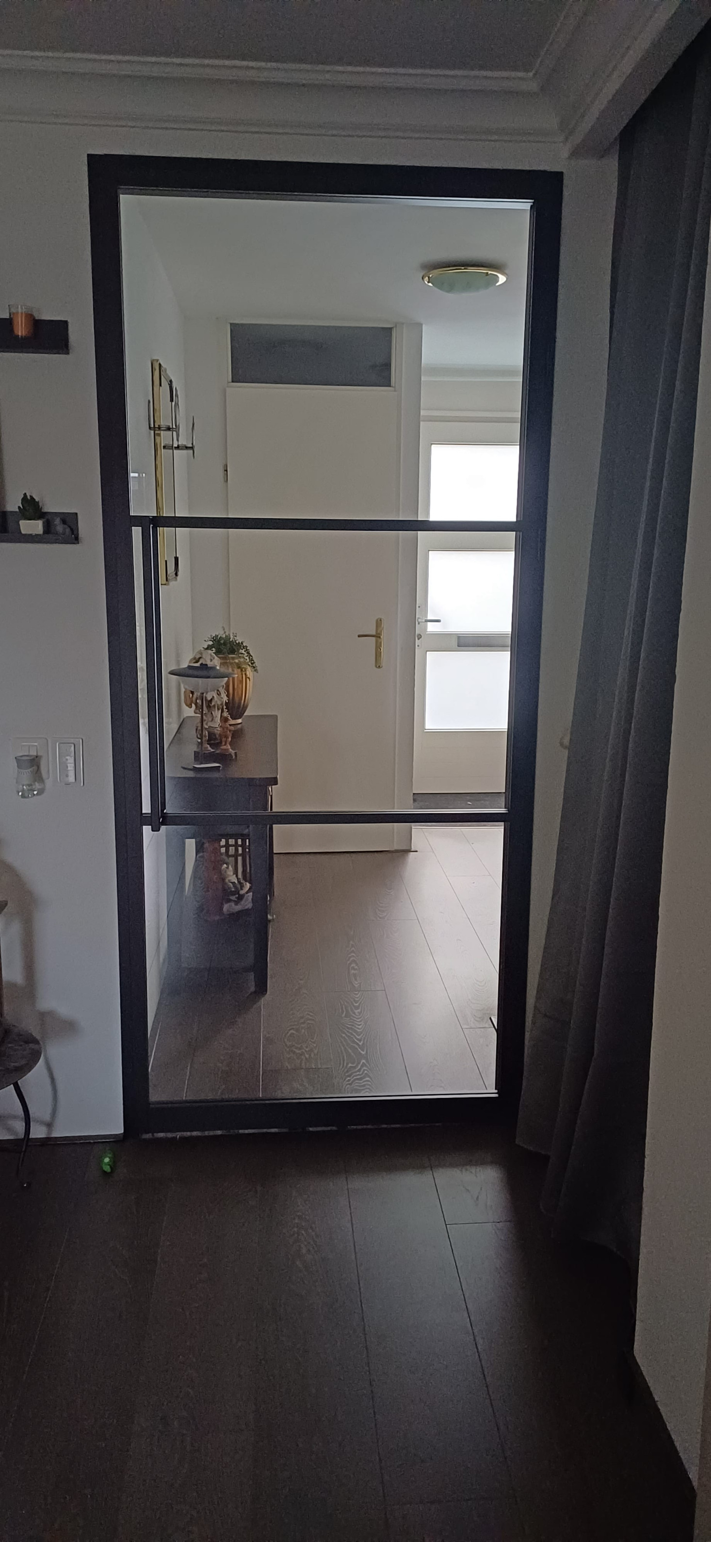 De prachtige taatsdeur met smoke glass ingemeten en gemonteerd door Gewoon Gers is de finishing touch van onze nieuwe woning.